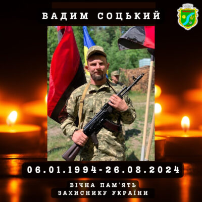 Вадим Соцький народився 6 січня 1994 року, навчався у місцевій школі №1, здобув професію кранівника у Гніванському професійно-технічному училищі та працював у ПП «Січ». На початку повномасштабного вторгнення перебував за кордоном, але восени 2022 року повернувся в Україну для захисту держави. Повідомили Гніванська Міськрада У 2023 році старший солдат Вадим Соцький підписав військовий контракт та […]