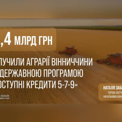 Станом на сьогодні Вінницька область входить до п’ятірки регіонів України за обсягами використання державної програми «Доступні кредити 5-7-9». Про це повідомила перша заступниця начальника Вінницької обласної військової адміністрації Наталя Заболотна. Повідомила Вінницька обласна військова адміністрація За її словами, 409 агропідприємств регіону вже скористалися програмою, залучивши загалом 2,4 млрд грн кредитних коштів. Програма «Доступні кредити 5-7-9», […]
