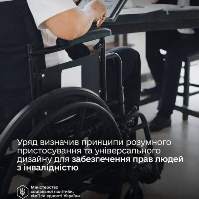 Кабінет Міністрів України ухвалив постанову, яка визначає принципи, критерії та межі впровадження розумного пристосування та універсального дизайну у різних сферах життя. Про це повідомляє Міністерство соціальної політики, сім’ї та єдності України Документ, розроблений Міністерством соціальної політики, сім’ї та єдності України, створює основу для практичного впровадження доступності у будівництві, транспорті, на робочих місцях та в наданні […]