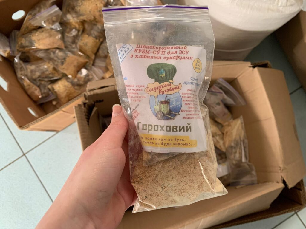 У майстернях готують різноманітні страви тривалого зберігання — від супів до борщів. Також тут активно сушать овочі: буряк, моркву, капусту та навіть картоплю. Цей технологічний процес доведено до максимальної ефективності. Загалом військовим уже передано понад два мільйони порцій їжі.