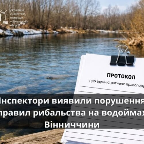 З 3 по 6 березня спеціалісти відділу державного екологічного нагляду (контролю) тваринного світу та біоресурсів провели обстеження водних об’єктів на території Вінницького та Жмеринського районів. Повідомляє Державна екологічна інспекція у Вінницькій області. Рейдові заходи охопили річку Південний Буг та ставки, розташовані в межах і за межами населених пунктів сіл Рівець, Ільківка, Могилівка, Селище, Бохоники та […]