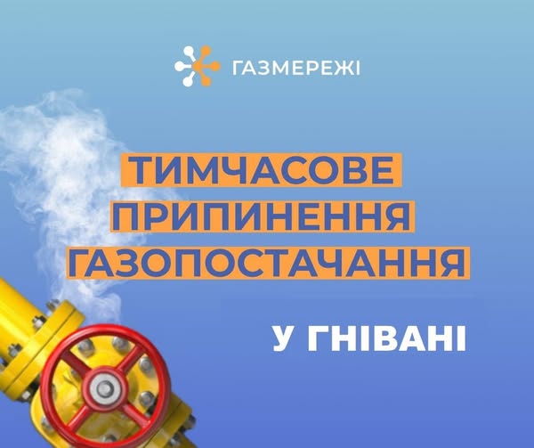 Газопостачання буде припинено з 09:00. Орієнтовне відновлення подачі газу заплановане з 13:00 — після завершення необхідних робіт.