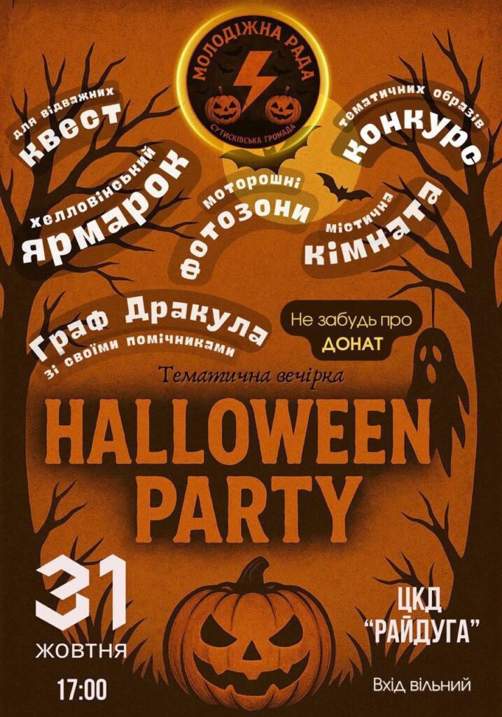 31 жовтня о 17:00 у Центрі культури та дозвілля «Райдуга» відбудеться тематичний захід до Геловіну.