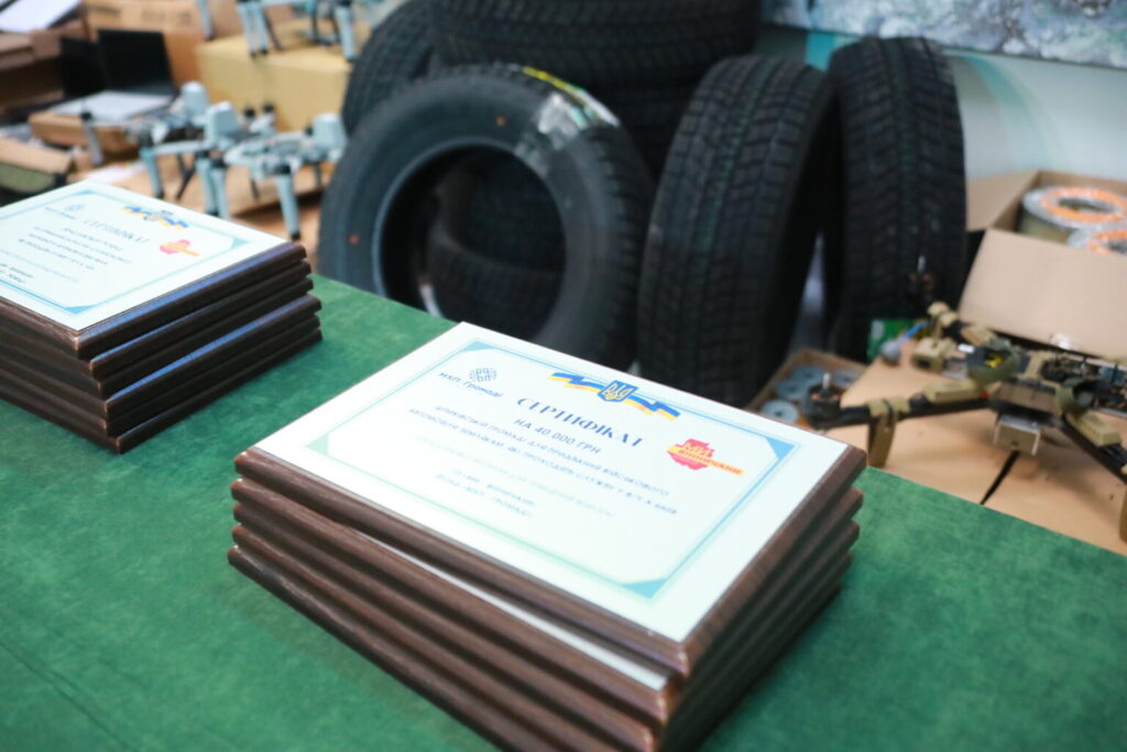 Представникам громад передали сертифікати та військове обладнання для військових частин і земляків, які проходять службу на фронті. Загальна сума допомоги становить близько 4 млн грн.