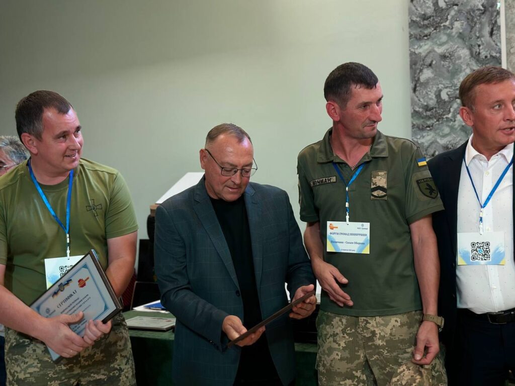Під час форуму представники громад отримали сертифікати на військове обладнання для своїх земляків. Серед обладнання – станції керування дронами, РЕБи, квадрокоптери, тепловізори, приціли, рації, захисне спорядження, генератори, супутникові модеми та багато іншого.
