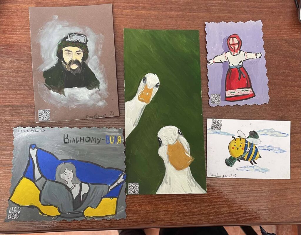 - листівки від педагогів Теплицької музичної школи, на яких розміщено QR-коди для прослуховування вокальних виступів юних вихованців – маленька частинка дому на передовій.