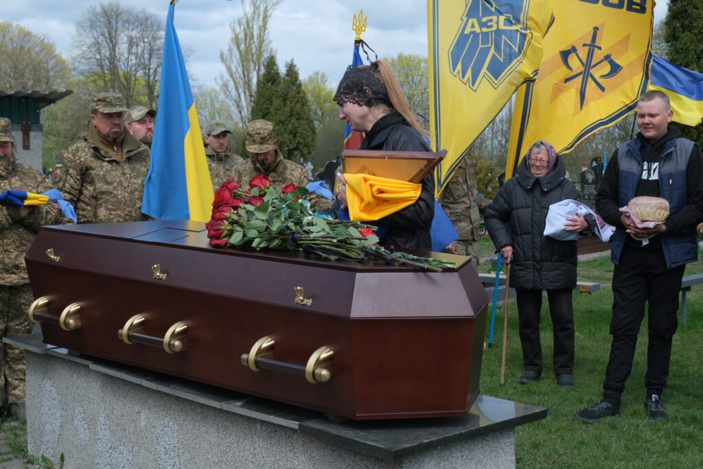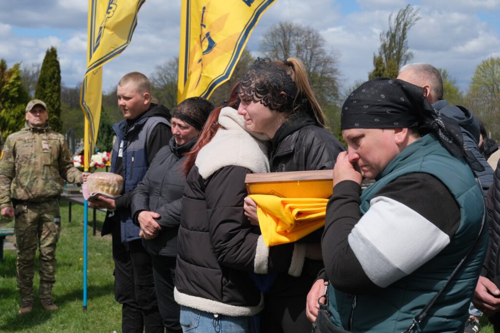 Мітинг на кладовищі відкрила депутат міської ради Віра Абрамович. Чин похорону звершили священнослужителі українських церков спільно з військовим капеланом.